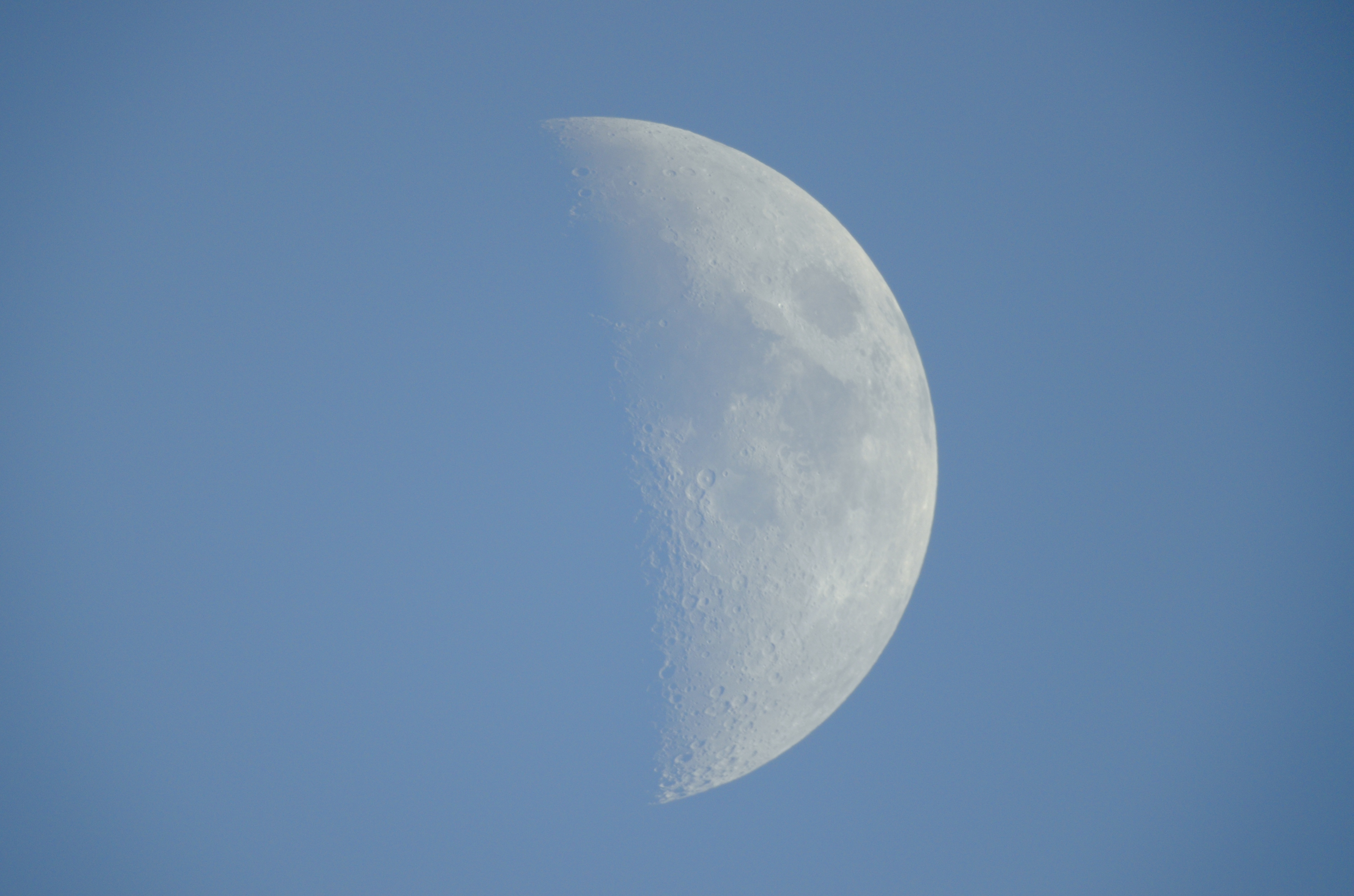 Moon 04.04.2025 18:40 GMT+5. Altitude 63°, illuminated 44.4%. Loggia window 4th floor. Celestron C-8A XLT, reducer 0.63x, Nikon D5100 - single frame, 1/800 s, ISO-800.