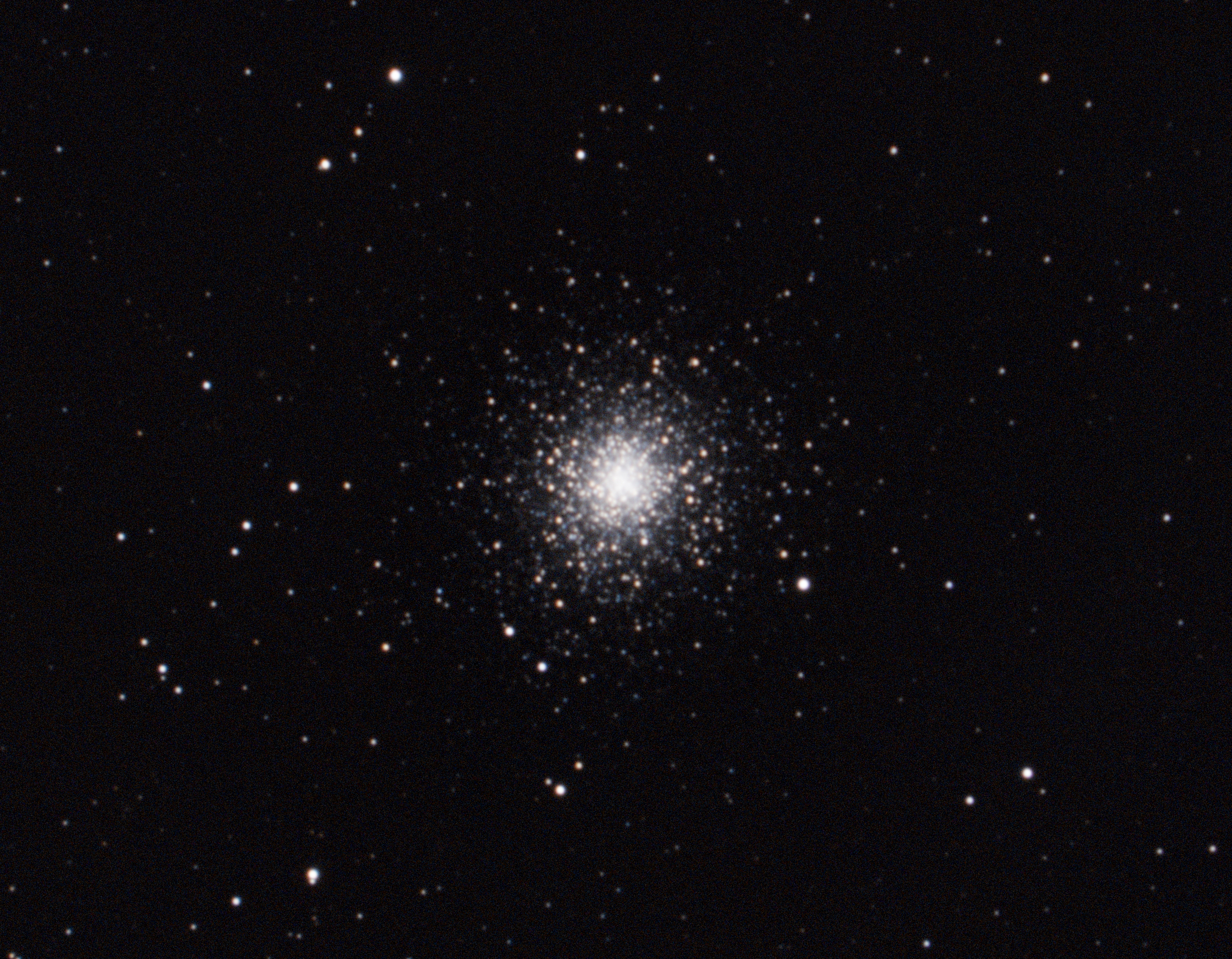 M 2 is a globular star cluster in the constellation Aquarius. Diameter is about 175 light years. Contains about 150,000 stars. Distance to M 2 is about 38,000 light years. Discovered on September 11, 1746 by Jean-Dominique Maraldi as a nebula without stars. In 1760, William Herschel resolved it into stars. It is one of the richest and most compact globular clusters. Angular size 16'.