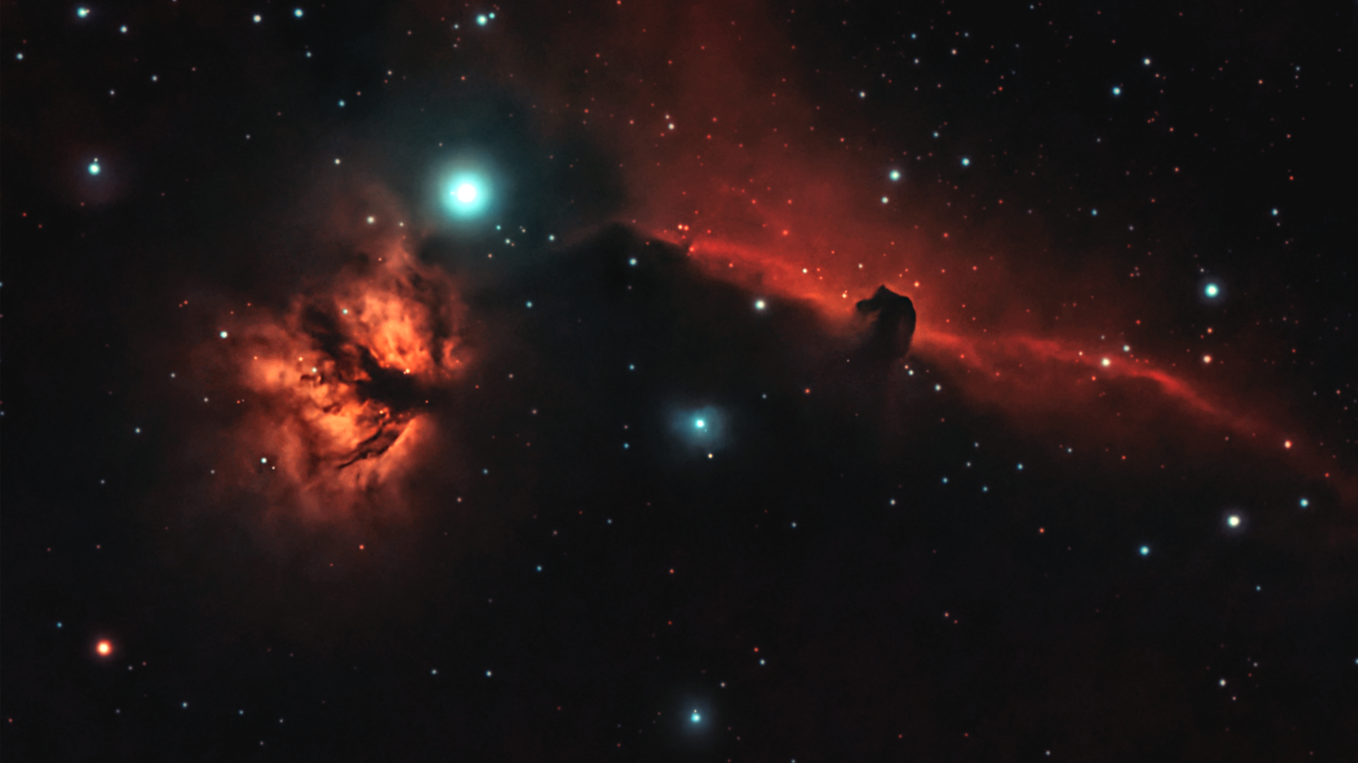 The Flame Nebula (NGC 2024), the Horsehead Nebula (IC 434, Barnard 33)