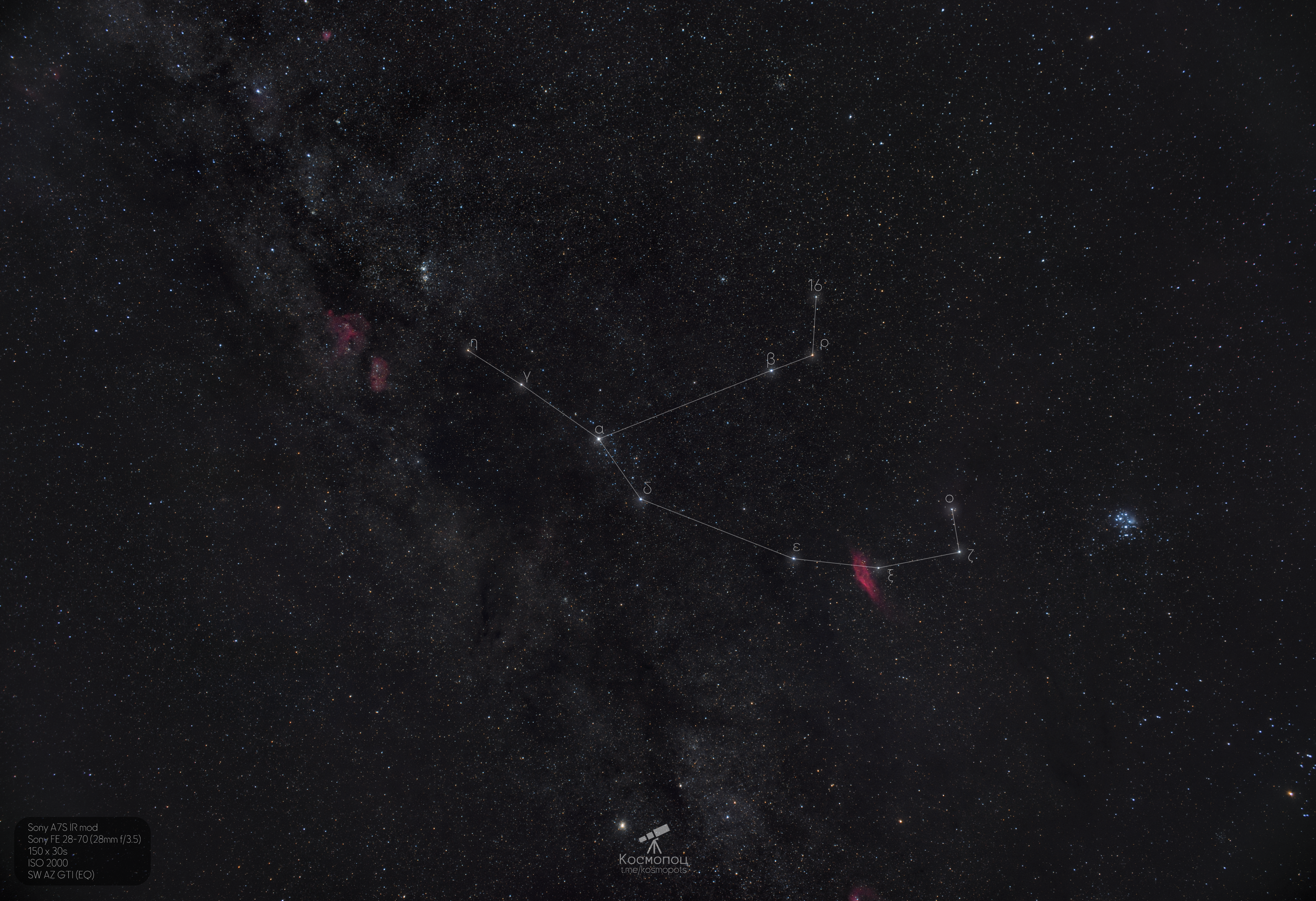 Well, I thought and thought about what to write about this constellation. I don't want to get too intellectual in the text. I knew about this constellation, but I never spotted it (like most other constellations). However, after I started processing it, then (on another trip out of town) it immediately started catching my eye.