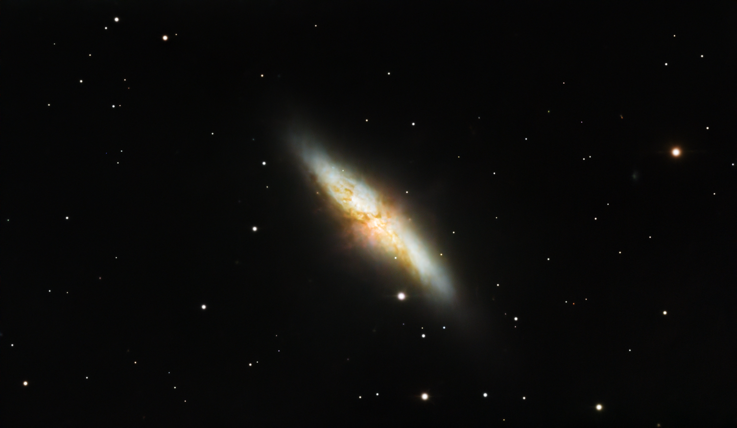 Галактика Сигара Расстояние - 12 мл. св. лет. Является спутником галактики M 81. В январе 2014 года в галактике обнаружена сверхновая звезда.