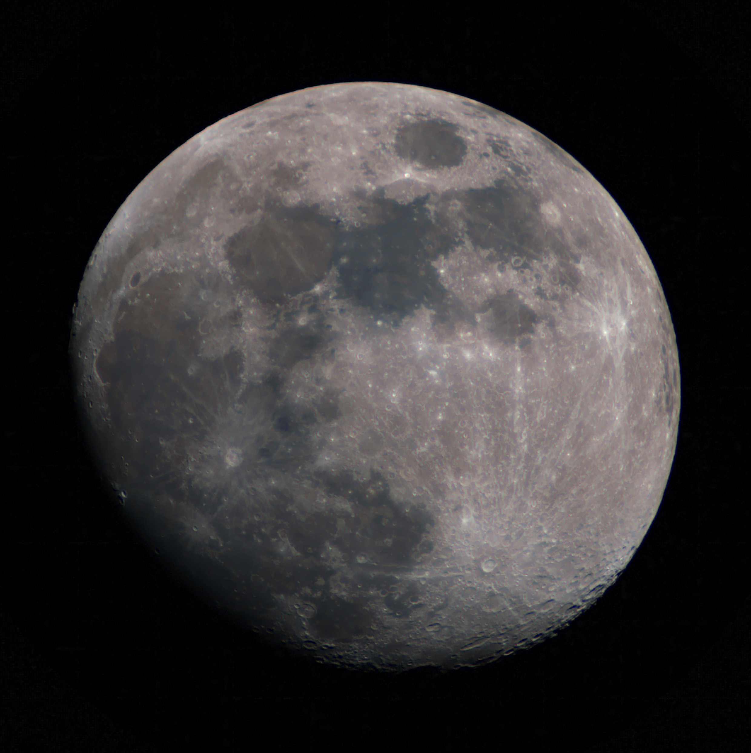 Moon on the evening of March 11, 2025, 19:45 UTC+5. Illuminated 93%, altitude 34.5°. Loggia window, 4th floor. Variable cloudiness. SvBony SV225 (AZ), SvBony SV503 102ED, lens block from LB3x SV193, Nikon D5000 - exp=1/360, ISO=200. PIPP, AutoStakkert - 10/30 k, Photoshop.