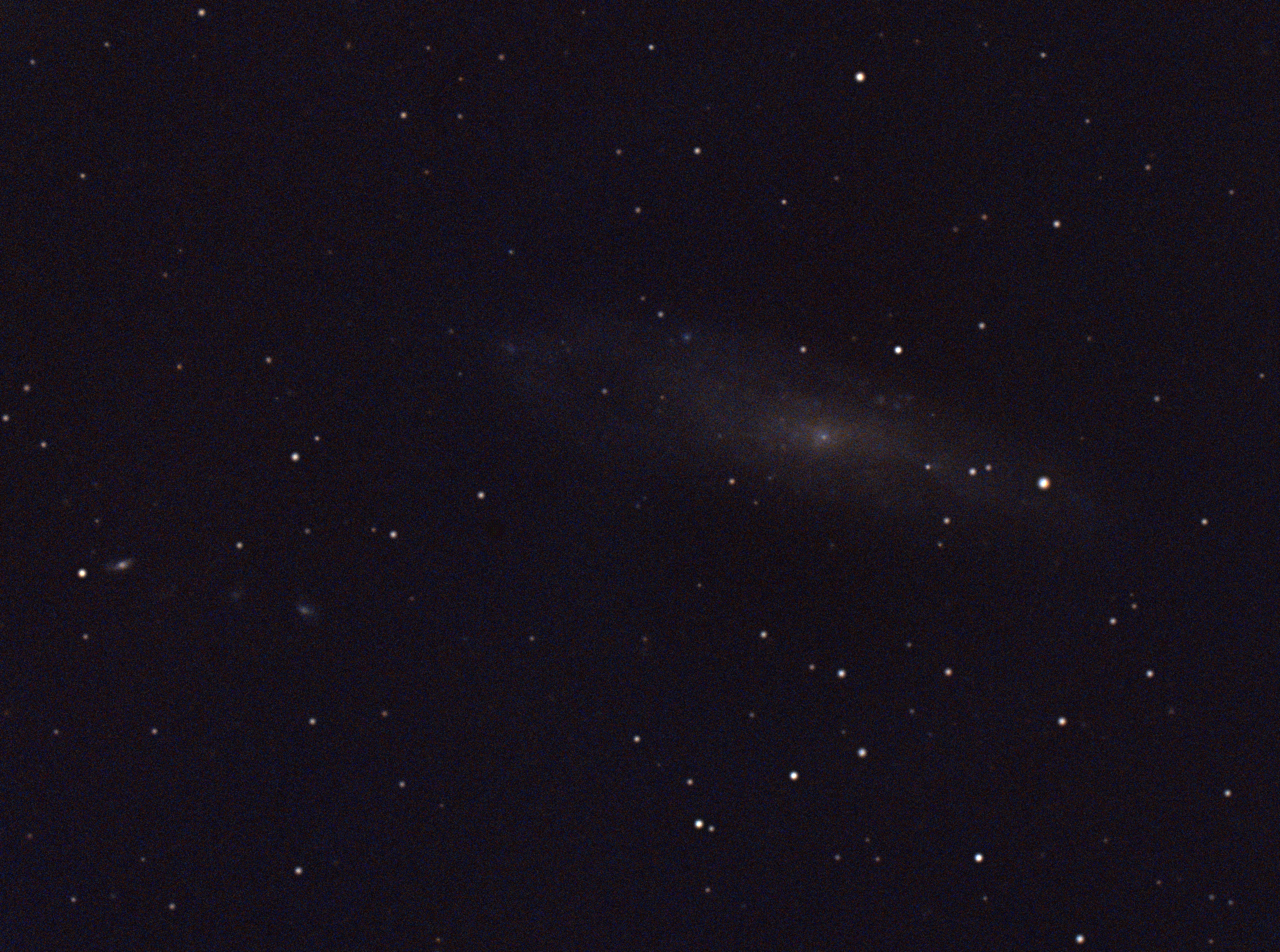 Very little accumulation (clouds came) and almost full moon. Didn't want to publish, quality is low, almost no material, but a very interesting object, or rather two. NGC 247 is 11.8 million light years away from us, diameter about 70 thousand light years. The angular size of the galaxy is 19.2x5.5 arcminutes. NGC 247 has a well-visible void in photographs, which is why it is called the "Needle's Eye" galaxy. Located in the constellation Cetus. Difficult to observe in the middle latitudes of Russia.