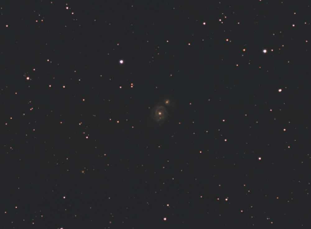 Galaxy M51 Whirlpool. Photographed under blue sky, white nights. Crop 2X.