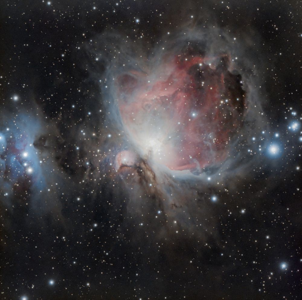 I did some work on fixing mistakes, completely re-shot with a filter and dithering function. I didn't use the cosmicclarity suit. I definitely overexposed the Trapezium, but at least the stars overall don't look like they were just glued on there. It was a moonlit night, too.