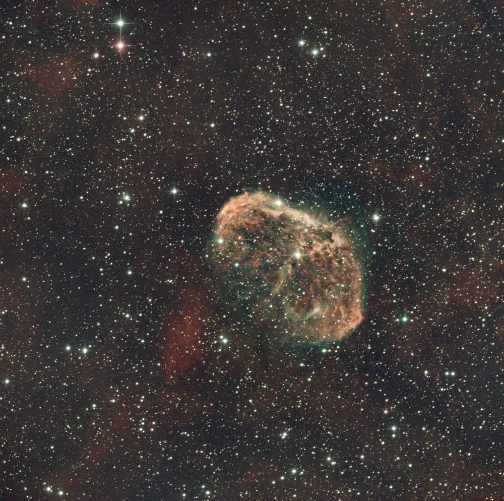The Crescent Nebula, LBN 203, Mount: MT-90 OTA: TS-Photon 8" f/4, Coma Corrector: Sharpstar 0.95x Camera: ZWO ASI 533C Pro Filter: Optolong L-eXtreme Guide Scope: Svbony 60/240 Guide Camera: T7 Astro Total Integration: 2.35 hours Single Frame Exposure: 300 seconds Bin: 1x1, Sensor Temperature: -5°C ISO/Gain: 100 Full calibration with 30 frames each (darks, biases, flats) Processing: DSS, FITStacker, Ps. Sky Brightness: Bortle Orange Zone. Capture Date: 29.04.22 Reprocessed from scratch; the old version was no good.