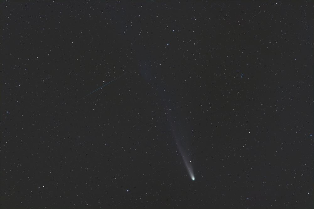 Full size. The colors of the stars are a bit off. But the galaxies are slightly visible. And either a meteor, or a satellite (with incorrect color correction).