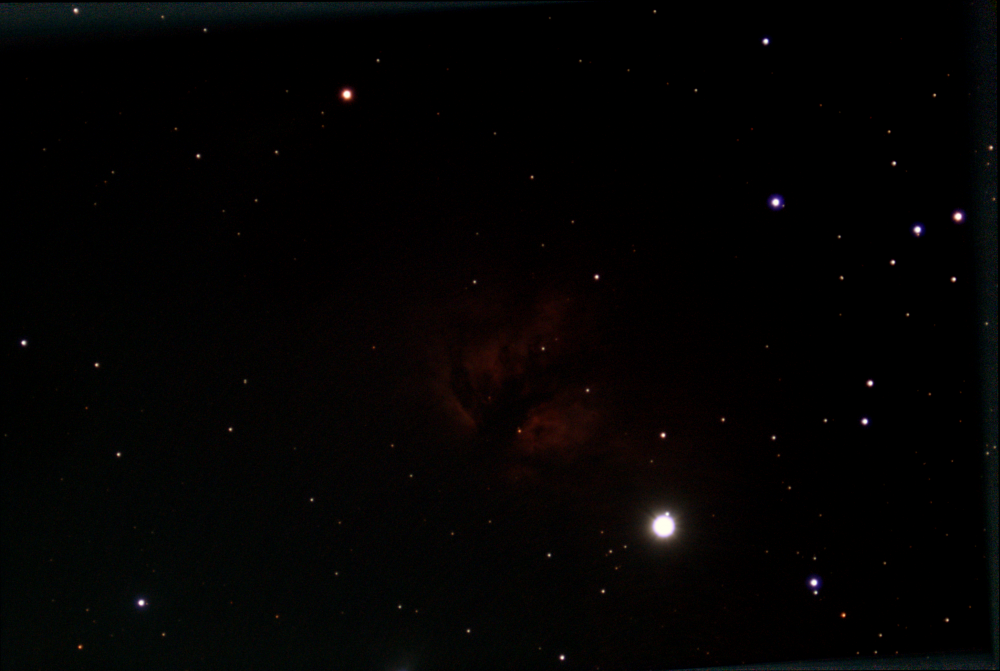 Distance from Earth: 3,000 light-years. The glow is caused by a large number of young stars constantly being born in this region. At the center, a dark dust structure can be seen, obscuring the glow.