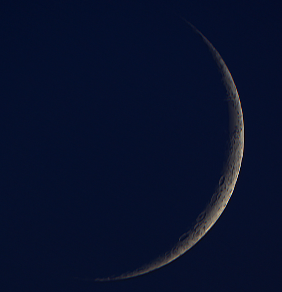 The Moon at a phase of +6.5%, a video of 400 frames, stacked to 240.