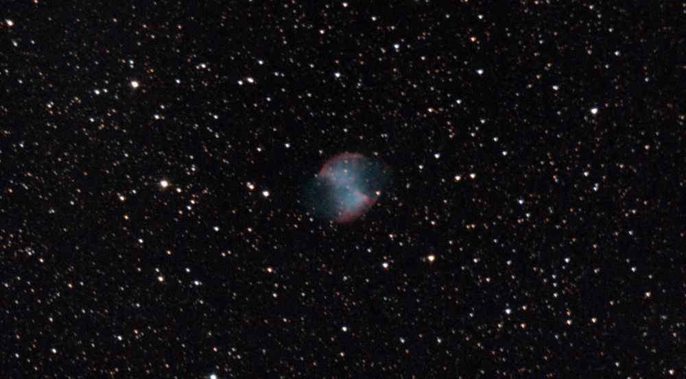 Second capture of the Dumbbell Nebula, already much better than the first time) though the stars are trailed. Couldn't take more frames, clouds got in the way.