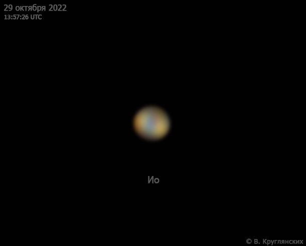 IO Telescope/Lens: Celestron C 11 XLT SC Camera: ZWO ASI290MM Accessories: ZWO ADC , Baader ViP Barlow 2x, Baader CCD RGB Samara, Russia Original size: https://deepskyhosting.com/2tb1UFh Author: Vitaliy Kruglyanskih