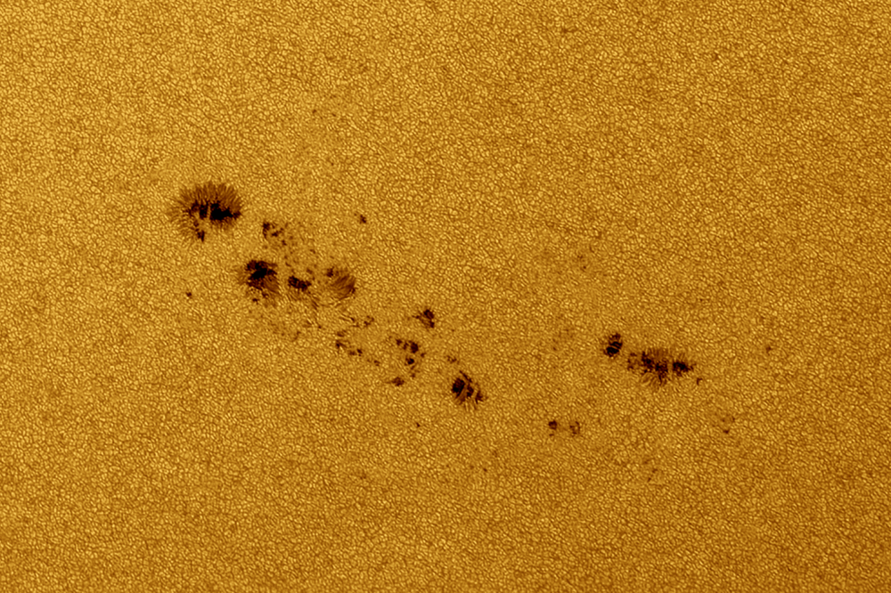 The solar photosphere in the green part of the spectrum. Sunspot region 3323.