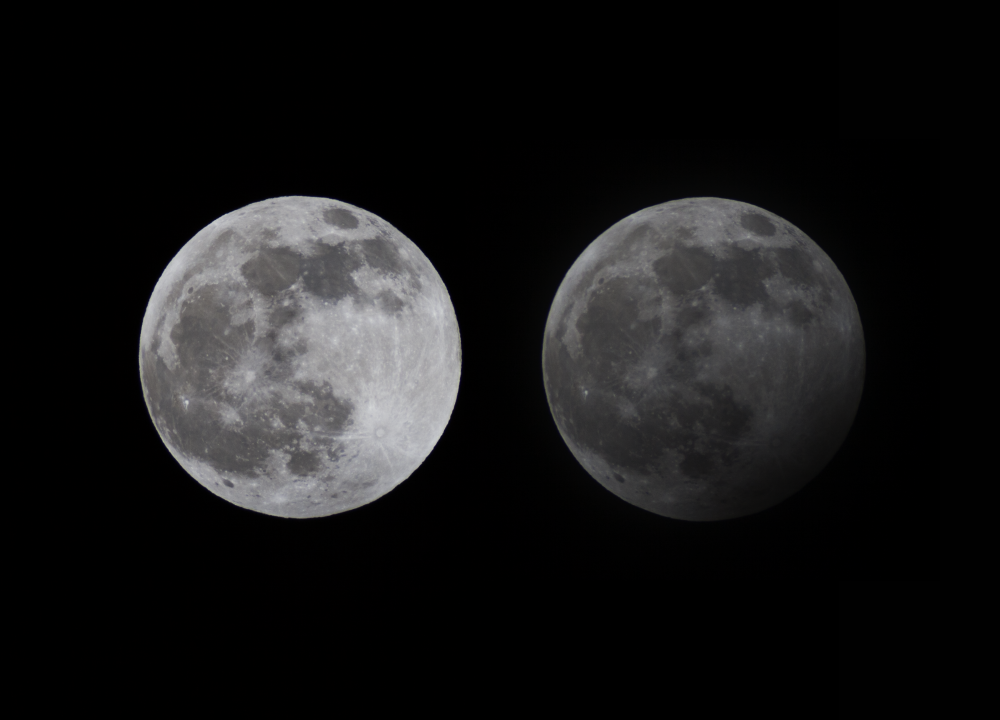 10.01.2020... Penumbral Lunar Eclipse... First photo before the eclipse begins, second photo - maximum phase (21:08)... Parameters are the same, processing too (Exposure 1/400, ISO-100)...