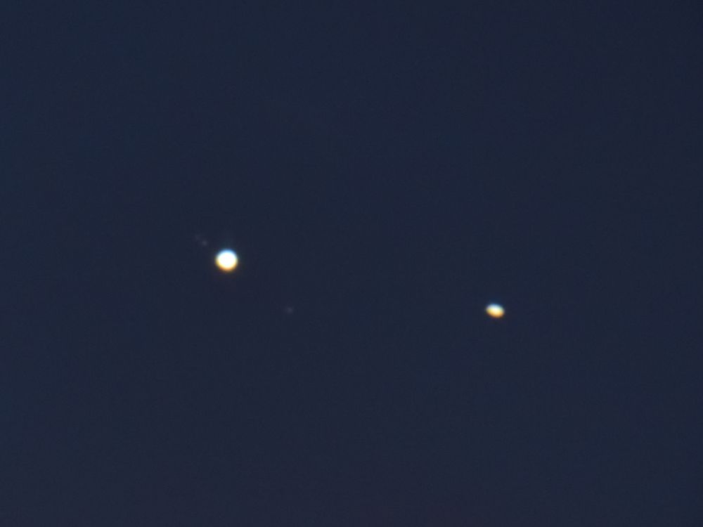 Single frame. Observing conditions were extremely unfavorable: planets low on the horizon, severe light pollution, wind, and variable cloud cover.