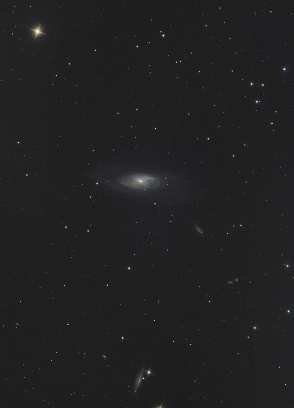 Две сессии, кадрирование не доглядел. И сильный градиент засветки, не удалось полностью победить. Кадрирование такое потому что было жалко выбрасывать нижнюю галактику.