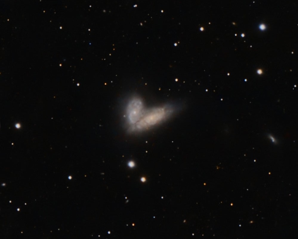 Super small for an 85 mm aperture. Butterflies or Siamese Twins in the constellation Virgo. Galaxies in the process of colliding and merging with each other. A pair in the initial stage of interaction. Located at a distance of about 68 million light years. The diameter of NGC 4567 is about 65,000 light years, angular size 3.1'x2.2'. The diameter of NGC 4568 is about 91,000 light years, angular size 4.6'x2.1'.