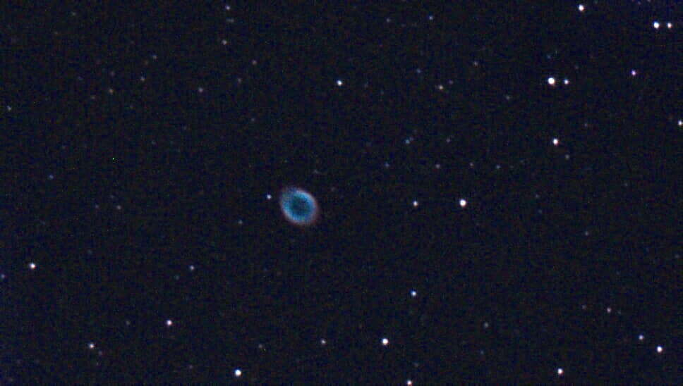 The planetary nebula M57, the "Ring Nebula," in the constellation Lyra.