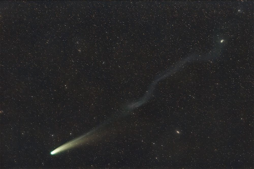 The tail of C/2025 A6 Lemmon goes above M51 "Whirlpool"