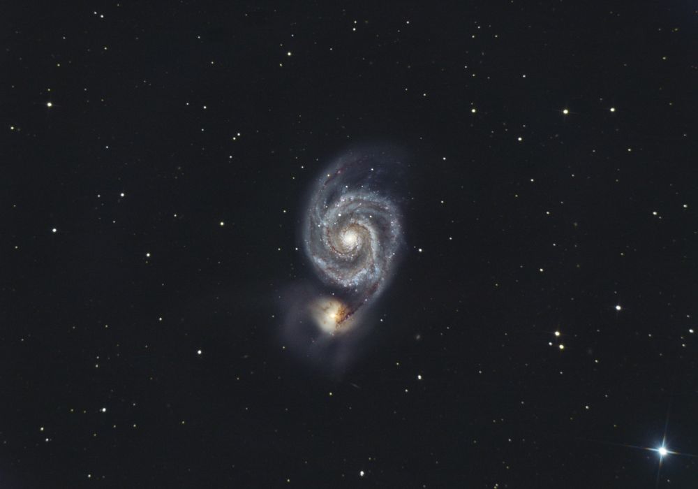 M51 Telescope/Lens: Newton F4 2m focal Camera: NIKON D850 Software: SIRIL Pixinsight Photoshop Provence, France Light Pollution: Blue zone Exposure: 250 x 30" ISO/Gain: 4000 Original size: https://deepskyhosting.com/9trZVF0 Author: ftapissier