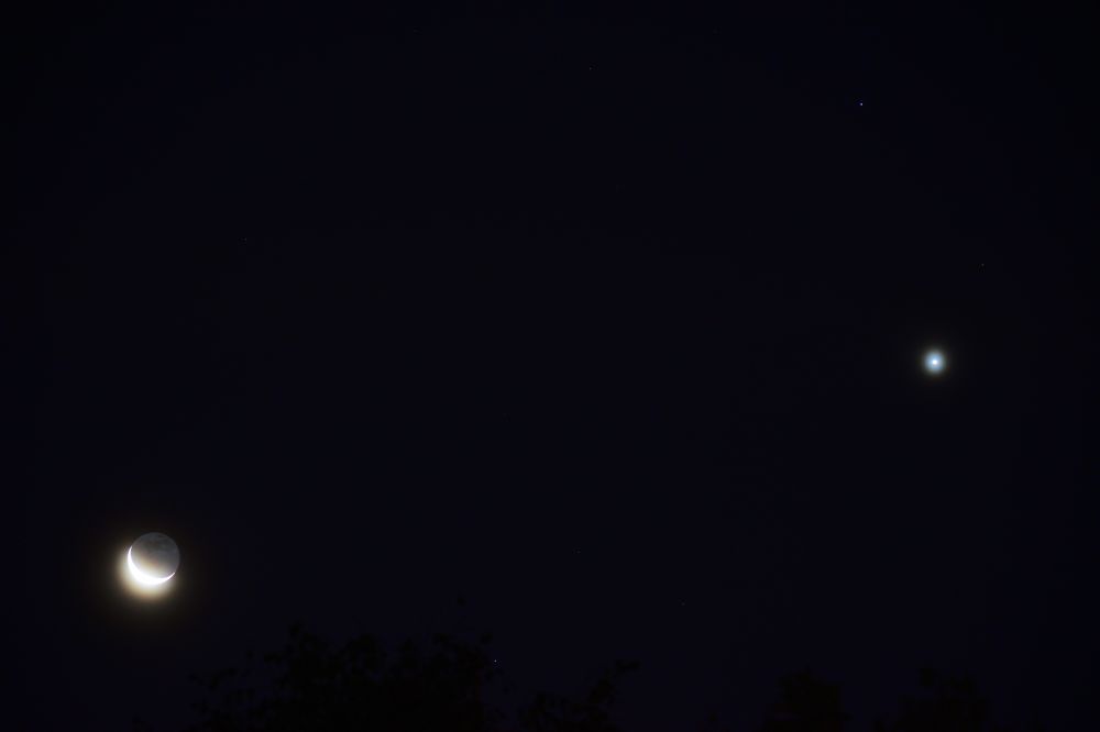 Conjunction of the Moon (-12%), Venus, and Regulus. 11.10.23, 05:30 Moscow time