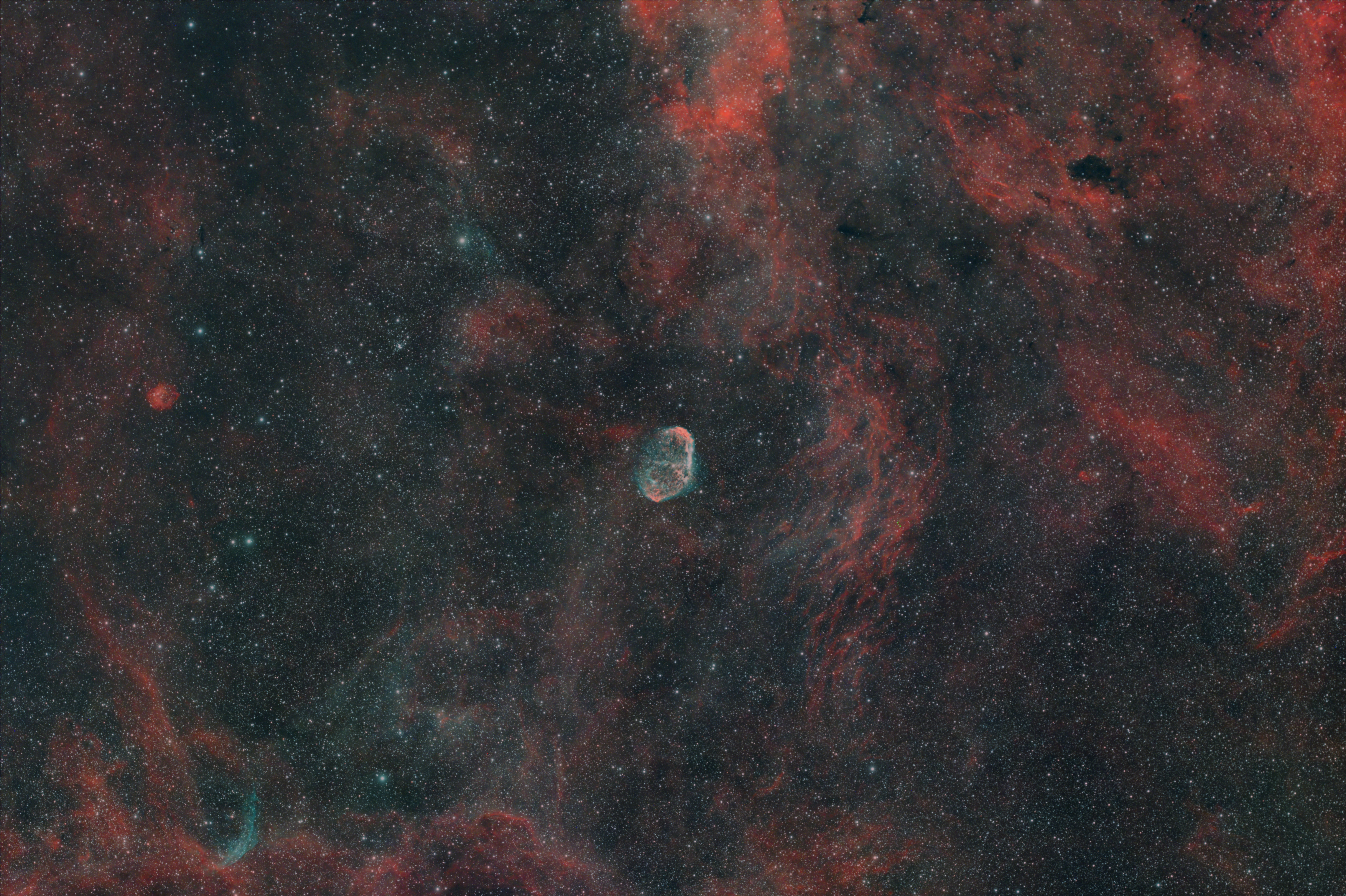 Nice framing! It's interesting how much the image changes between the 3 nm and 7 nm filters. At 3 nm, the contrast is stronger on one side, while at 7 nm it turns out much softer. In the lower left corner, there's a supernova remnant—it really makes you want to collect more data on it!)