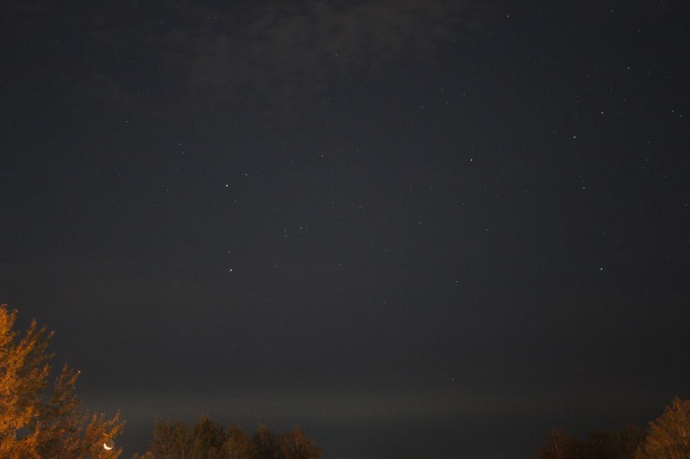 The image shows the M35 star cluster and the crescent Moon.