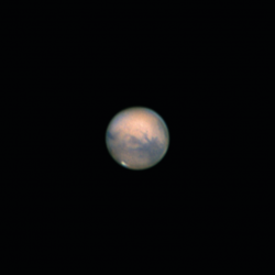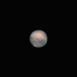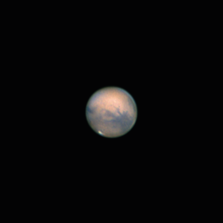 Марс, через неделю после противостояния, в ночь с 20 на 21 октября 2020 года. Расстояние до планеты 64,5 млн.км, диаметр около 21,7 угловых секунд.