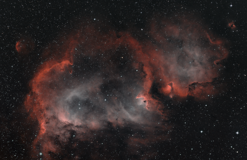 I reworked some old material while trying to learn PixInsight. The Soul Nebula, S2-199, LBN 667 Mount: MT-90 Telescope: TS-Photon 8" f/4 Coma corrector: Starizona Nexus 0.75x Camera: ZWO ASI 2600mc Finder scope: 32x125mm Guide camera: ZWO ASI 178mm Filter: IDAS NBZ Total integration: 4.0 hours Date: October 16, 2022 Single exposure: 300 seconds Bin 1x1, Sensor temperature: 0°C ISO/Gain: 0 Calibration: 30 darks, 30 biases, 30 flats Processing: DSS, FITStacker, Nebulosity4, Starnet, PixInsight, Photoshop Sky brightness: Orange zone.