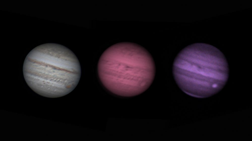 Выравнен фон, плюс коррекция освещённости дисков. 17 сентября 2022. НСО, Рыбачий. Фильтры слева на право: ZWO UV-IR Cut, svbony IR pass 685 nm, QHYCCD CH4 890 nm