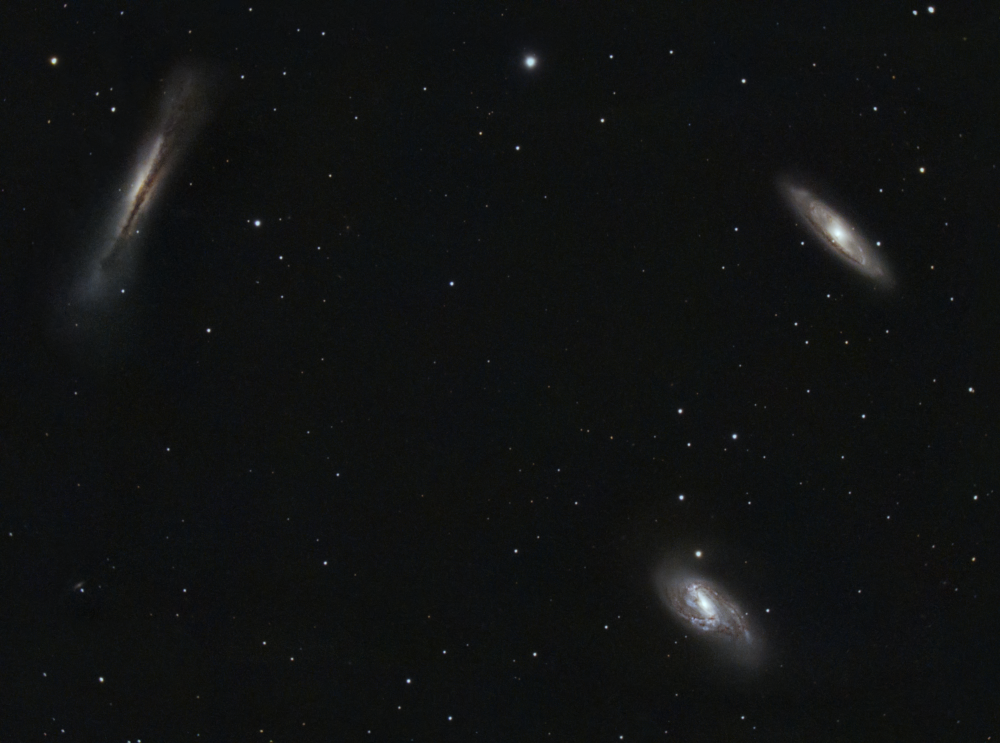 This could be considered my first successful attempt at photographing galaxies from within the city. I encountered many challenges along the way, from the inability to use guiding with the Meade LS8 ACF telescope to solving issues related to the low light-gathering capability of the entire optical system. Through trial and error—spending about ten nights on it—I determined the optimal shooting mode and setup, purchased the missing equipment components (focal reducers), and the results of these efforts can be seen in this image of distant stellar islands located 35 million light-years away from us.