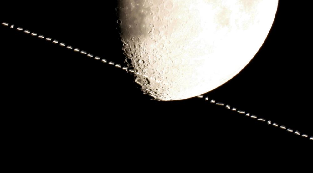 Collage of the ISS transit across the Moon, from frames of the original video.