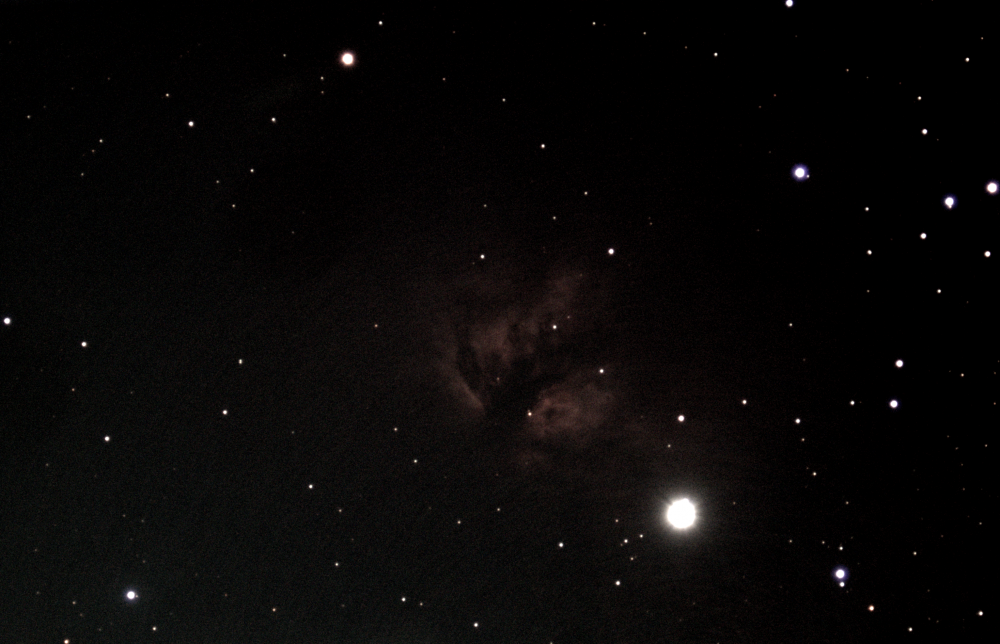 Distance from Earth: 3,000 light-years. The glow is caused by a large number of young stars constantly being born in this region. At the center, a dark dust structure can be seen, obscuring the glow.