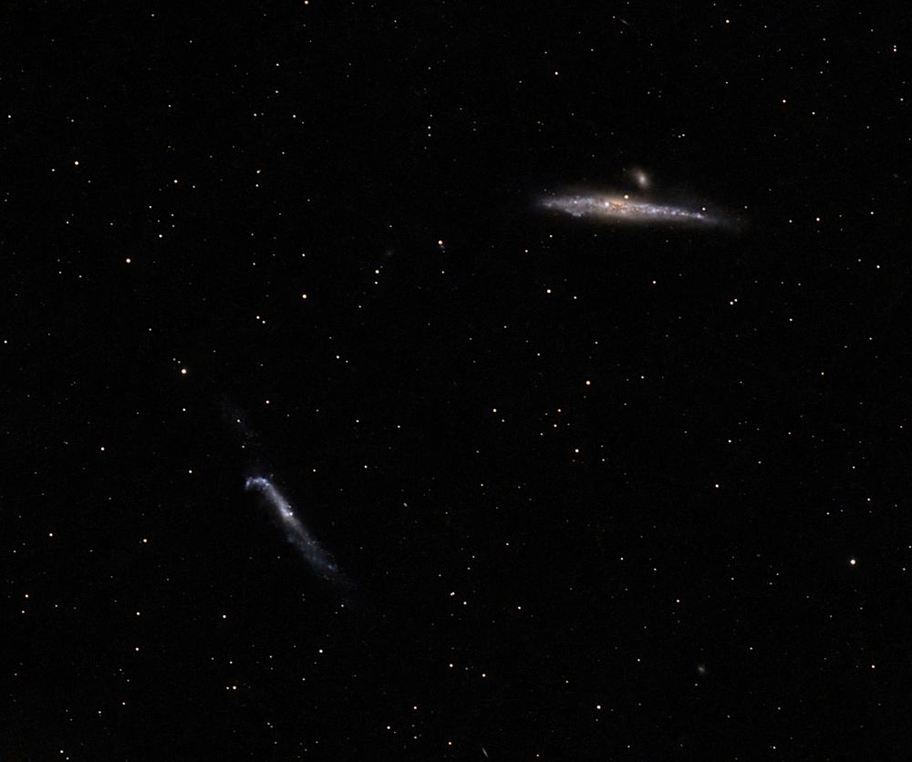 NGC 4656 (Hockey Stick or Crowbar) distance about 30 million light years. Apparent size 15.3' × 2.4'. The unusual shape is due to interaction between NGC 4656, NGC 4631 and NGC 4627.
