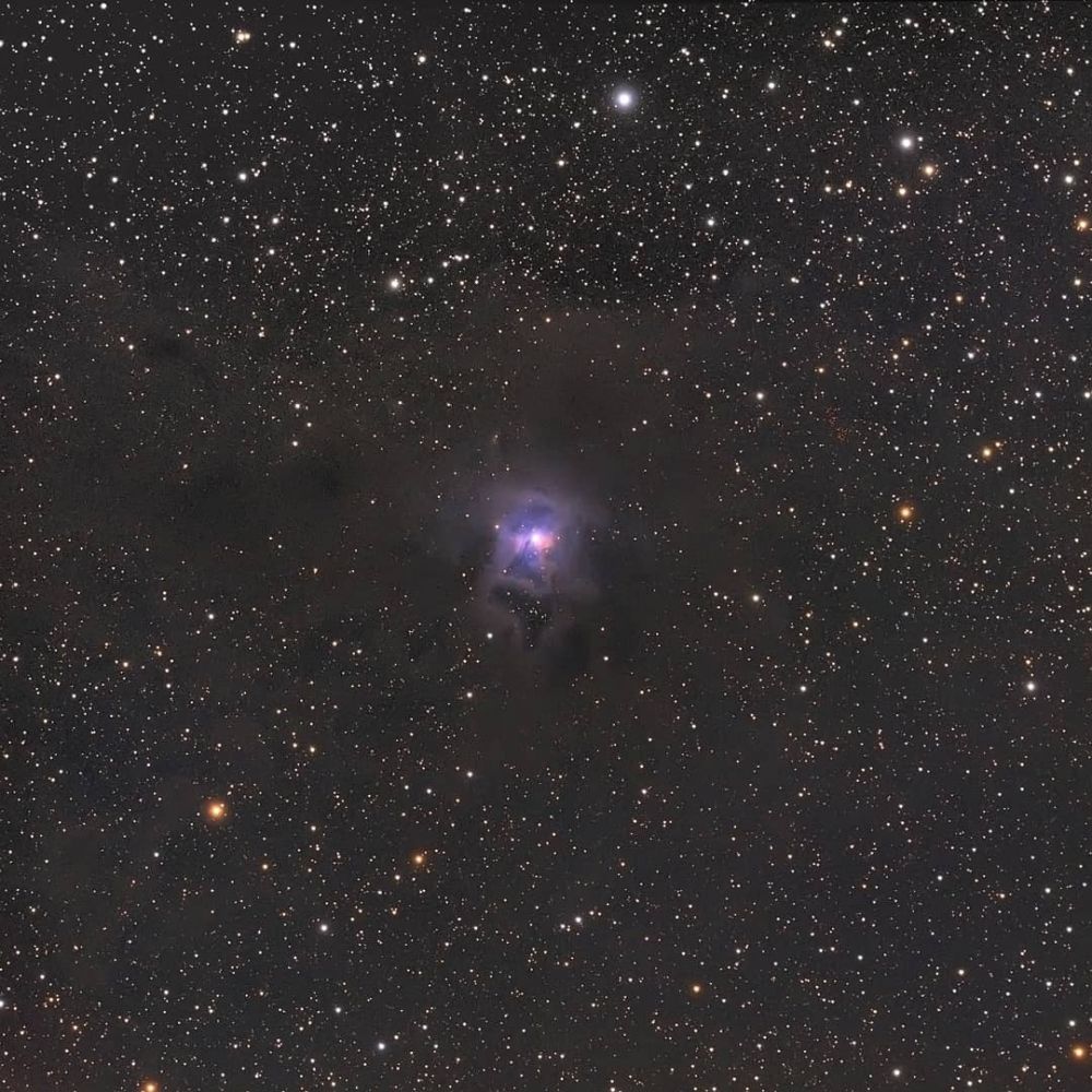 Iris Nebula, NGC 7023 Mount: MT-90 Telescope: TS-Optics Doublet SD-Apo 80 mm f/7 Reducer: TS-Optics REFRACTOR 0.79x 2" ED Reducer Corrector for APO und ED Camera: ZWO ASI 533C Pro Filter: Optolong UV/IR Cut Guide Scope: Svbony 60/240 Guide Camera: T7 Astro Total Integration: 3.5 hours Single Exposure: 200 seconds Bin: 1x1 Sensor Temperature: -5°C ISO/Gain: 100 Full calibration with 20 frames each (darks, biases, flats) Processing: DSS, FITStacker, Photoshop Sky Brightness: Orange Zone Date: September 8, 2021