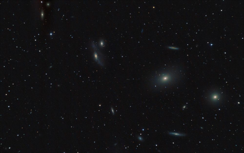 Объекты на снимке: NGC 4461, NGC 4458, IC 3393, NGC 4438, NGC 4435, NGC 4425, IC 3355, NGC 4413, M 86, NGC 4406, NGC 4402, NGC 4388, NGC 4387, IC 3303, M 84, NGC 4374