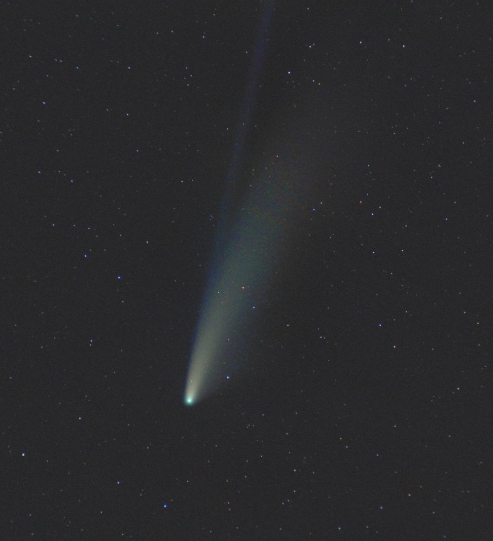 Comet C/2020 F3 (NEOWISE) can now be observed in the evening under sufficiently dark skies. This allowed an interesting color palette and ion tail to be revealed.