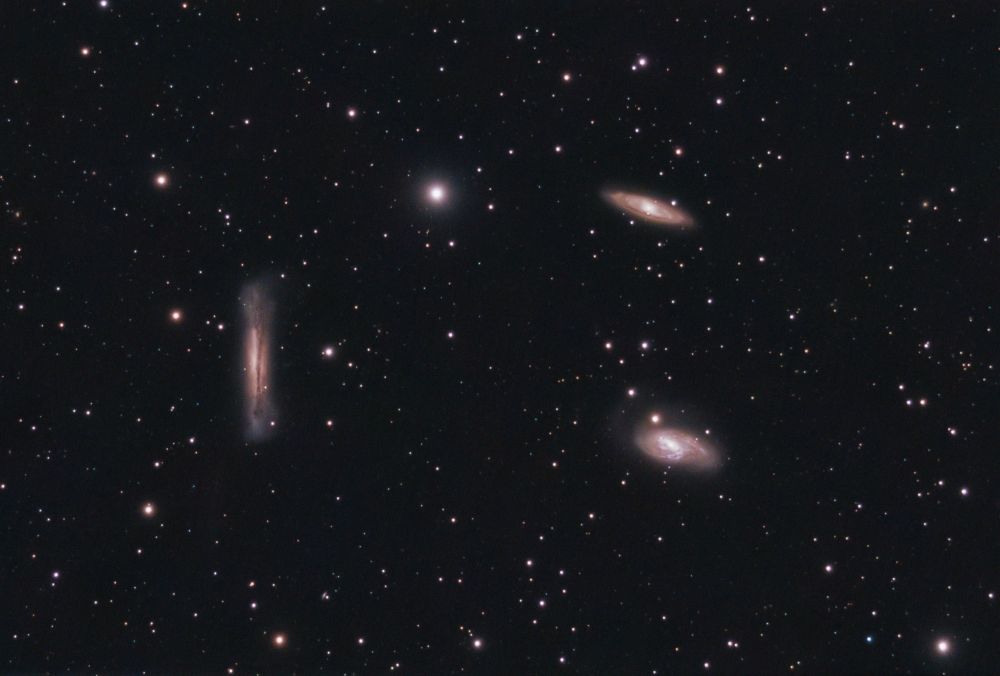 M65, M66, Hamburger Galaxy. Captured on February 15 and 22. Cooler temperature -35°C. Flats, darks, dark-flats.