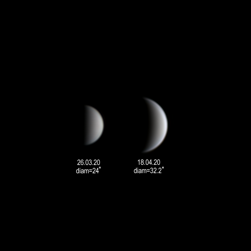 Changes in the phase and angular size of Venus over 23 days.