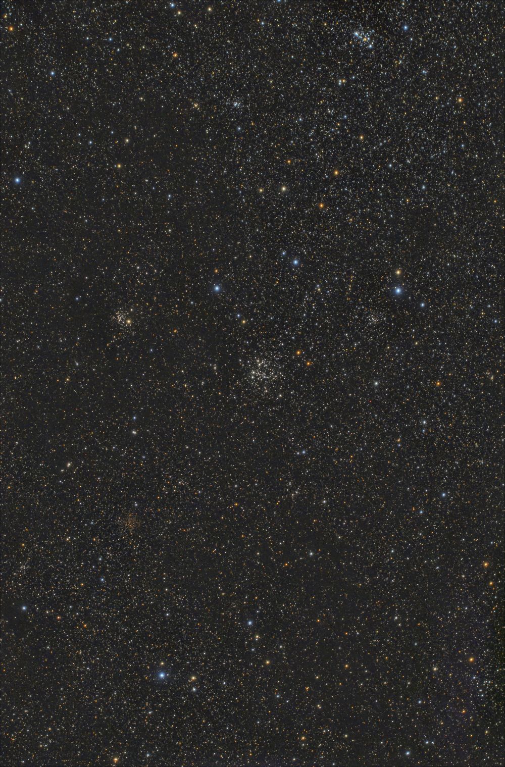 This region of Cassiopeia, rich with open clusters, has been on my mind for a long time. The whole day was rainy, with only a brief clearing in the evening. The air was damp and cold at +3°C, with a light mist.