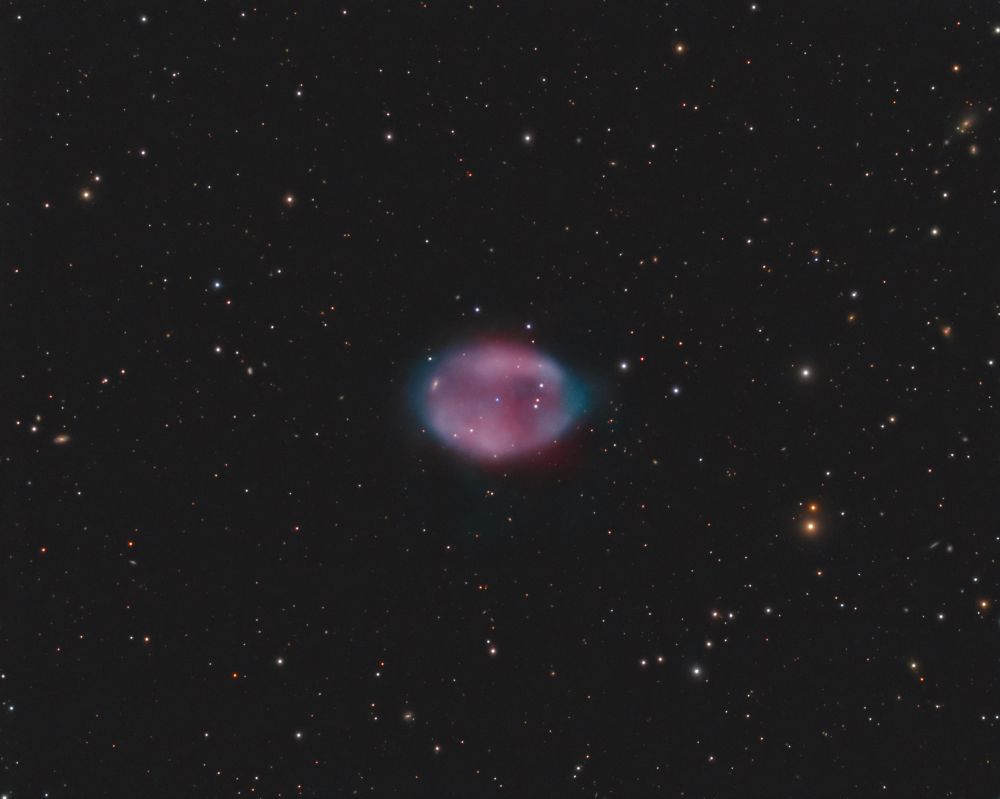 This is the first colour image ever taken of PN G136.7+61.9 planetary nebula. In appearance, as well as low surface brightness, this planetary nebula could be called "Night Owl Nebula".