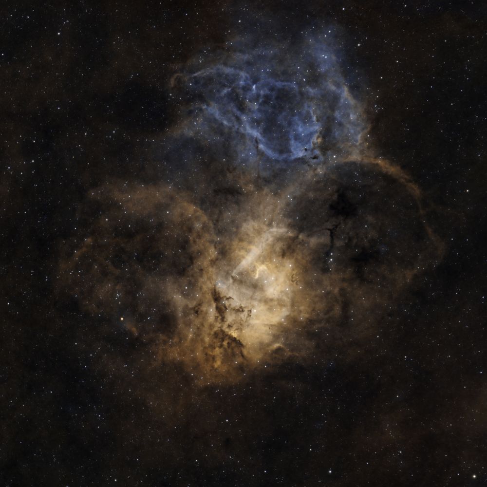 SH 2-132 - THE LION NEBULA HOO Telescope/Lens: SharpStar 61EDPH II + 0.8x reducer Camera: ZWO ASI533MM Pro Mount: Sky-Watcher Star Adventurer 2i Guide Scope: Starpal 32/125 f4 Guide Camera: ZWO ASI 120mm Software: Siril, GraXpert, Adobe Photoshop Accessories: ZWO Asiair mini, ZWO EFW-S, ZWO EAF Lipeck, Russia Light Pollution: Yellow zone Exposure: 235 x 120" ISO/Gain: 101 - ZWO H-alpha 1.25" , ZWO OIII 1.25" Original size: https://deepskyhosting.com/LSEQg0q Author: lxkor