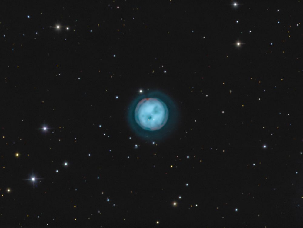 The nebula image was captured using narrowband filters, while the stars were imaged separately in RGB.