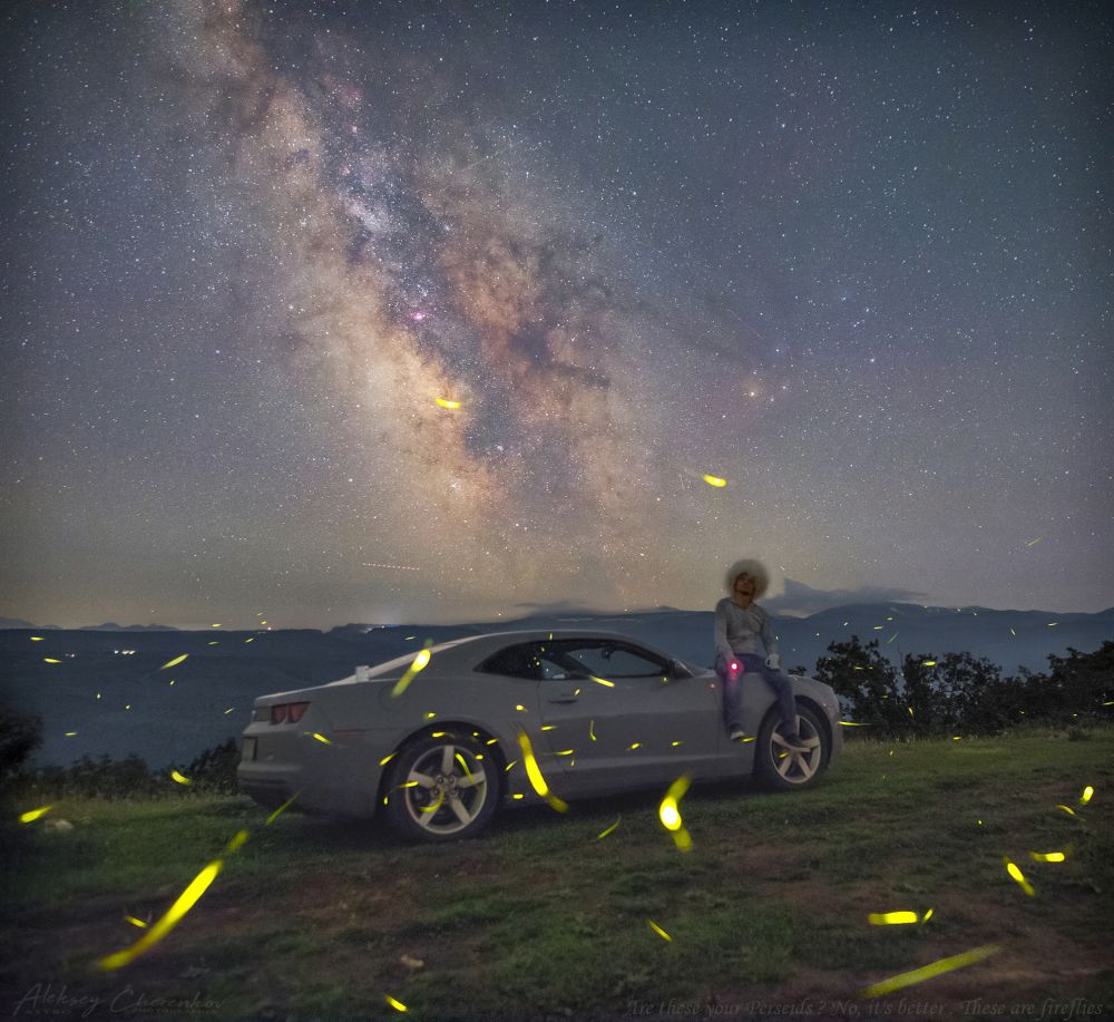 canon 6D, Sigma 20mm, f/2, 13”, ISO5000 земля и небо и часть светляков одним кадром со штатива + еще светляки с 12 кадров (таймлапса)