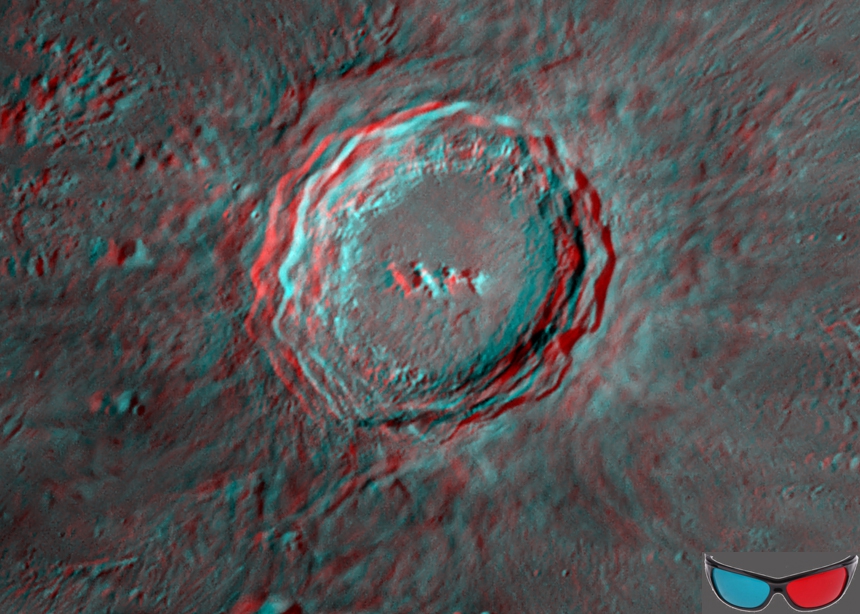Stereoscopic image of the crater Copernicus. The frames were taken on different days under varying lunar libration.
