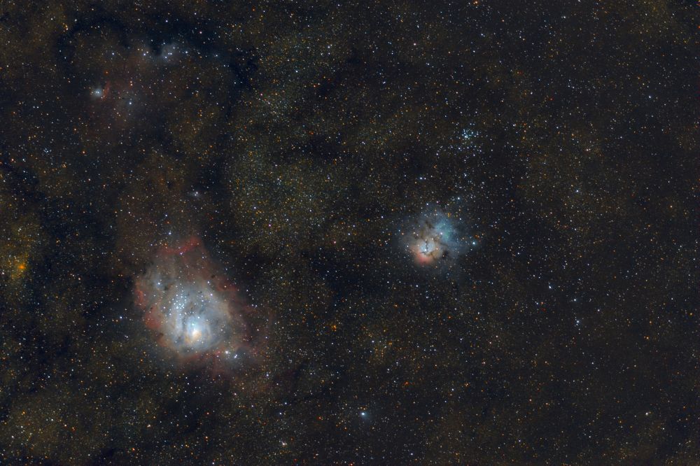 Туманности M8-M20. SW SA, SW 66ED+WO 0,8x Type III, Canon 350D, автогид 8×50+QHY6.10х500с, ISO 800. 19.08.2017 САО, Карачаево-Черкессия, Северный Кавказ