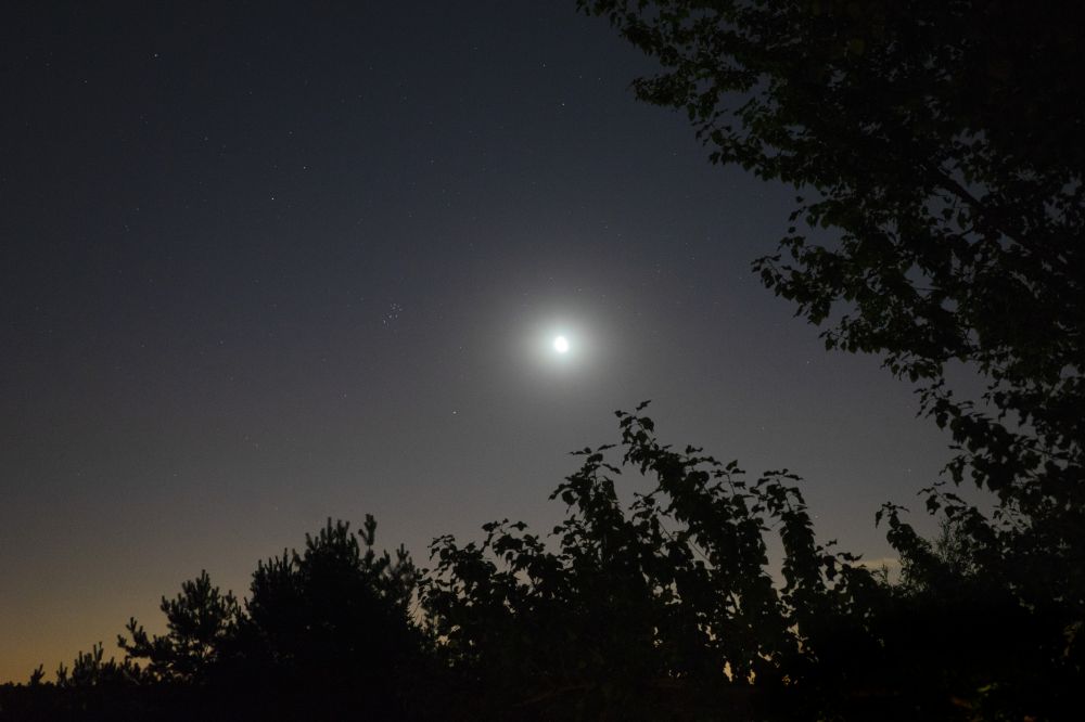 A quadruple conjunction of the Moon, Mars, the Pleiades, and faint Uranus.