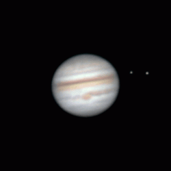 Анимация вращения Юпитера за 40мин. 13.08.21 Видим вход в тень спутник Ио, правее - Европа