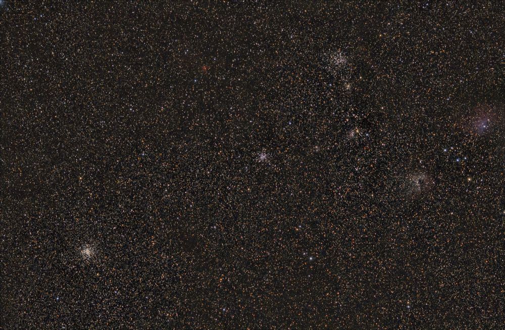 The image was taken near the village of Kolarovo in the Tomsk region. Gusty winds prevented the use of long exposures, resulting in many flawed frames—even at 30 seconds, the stars are slightly trailed. A pleasant surprise was the appearance of the nebulae IC 405 and IC 410.