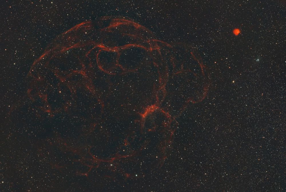 Another name for it is the "Spaghetti" Nebula. The star exploded about forty thousand years ago, leaving behind a huge "tangle" of gas filaments, shock waves, and the neutron star pulsar PSR J0538+2817. It is located about 3000 light-years away from us.