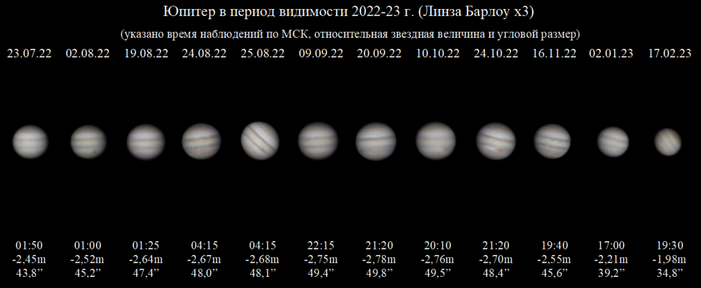 Jupiter during the 2022–23 observing season.